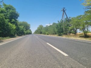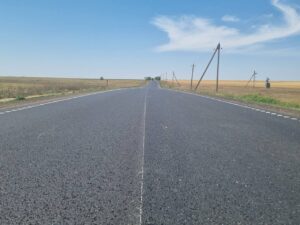 На данном участке выполнен полный комплекс работ по замене дорожного основания, обустройству выравнивающего слоя, укладке асфальтобетонного покрытия и обустройству обочин. Ремонт данного участка дороги ведется для обеспечения комфортного и безопасного движения транзитного транспорта и имеет исключительно важное значение для местных жителей.